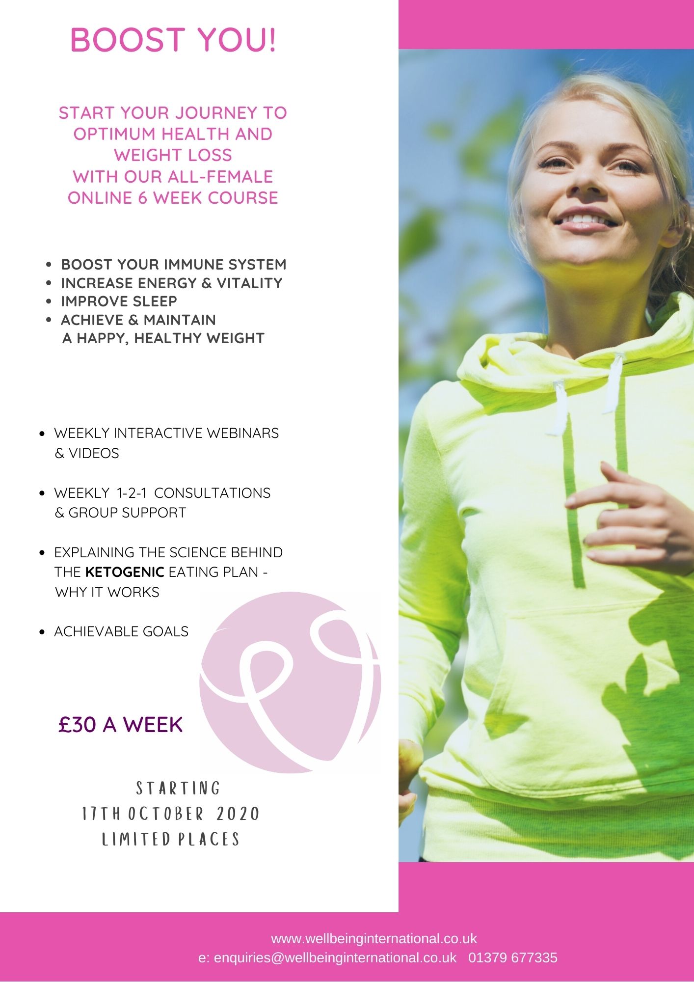 Having recently completed our new Boost You! online six-week course we are delighted to announce the date of the next one starting on the 17th October.